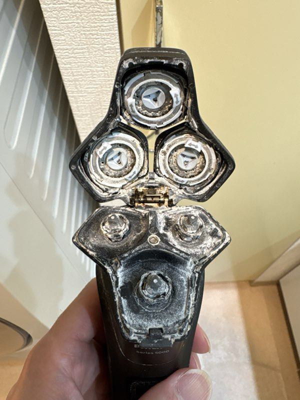 以前使っていたフィリップスは、水洗い後にカルキで白い粉が付着していましたが、パナソニックのパームインシェーバーは毎回洗っても清潔に保てます。
